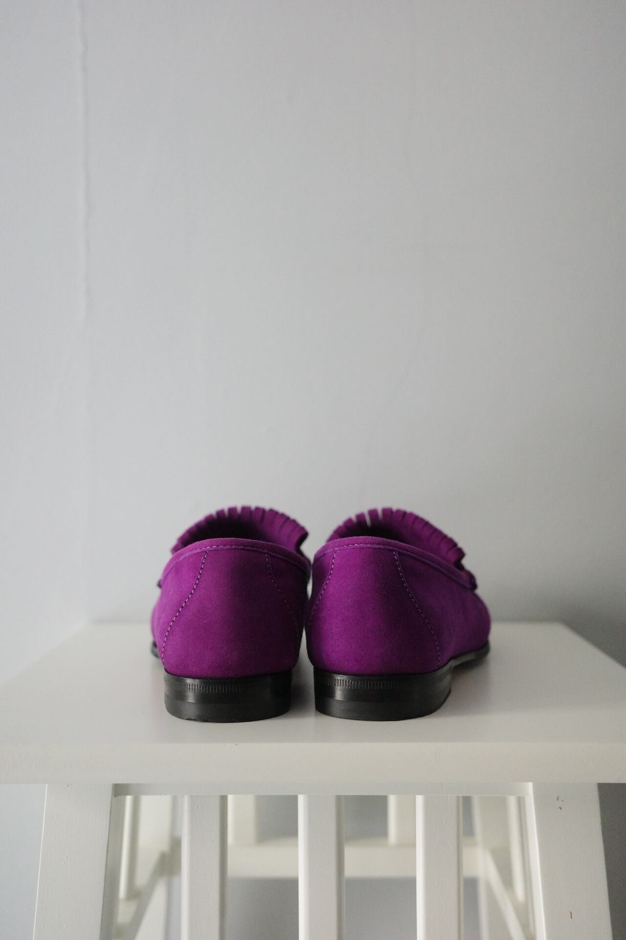 中性洗剤にて水洗い後、陰干し乾燥とシューキーパーによる成型。