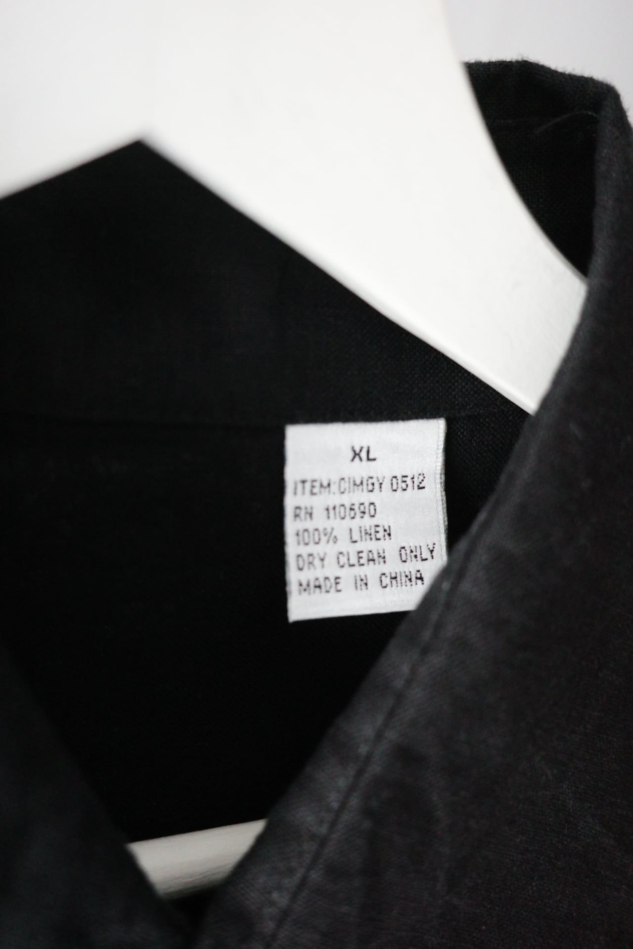 ティトーズのロゴが入ったブラックリネンのキューバシャツ。