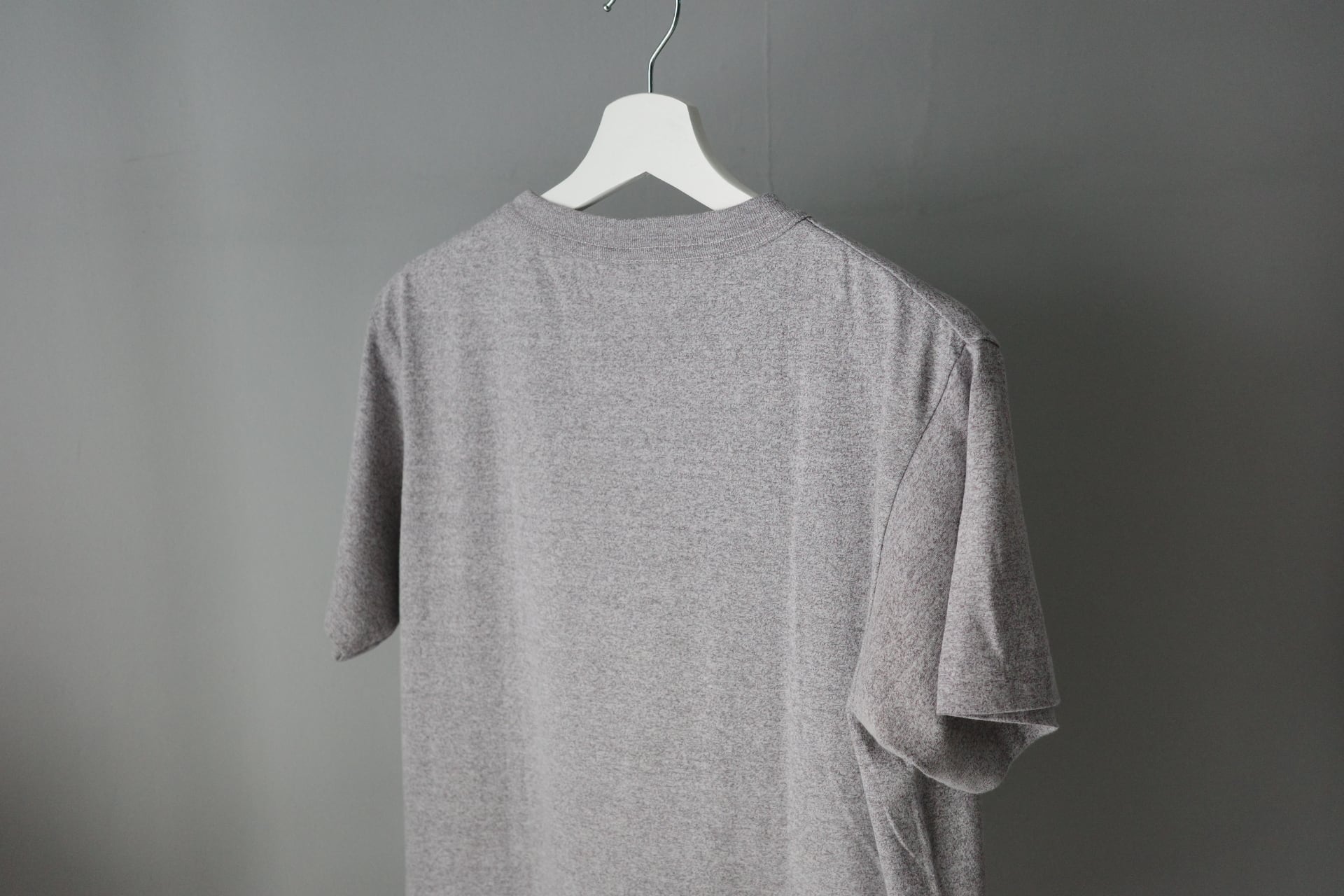 コットンとポリエステルの混紡素材、生地は中厚手、背面プリントなし、シングルステッチの仕様となります。