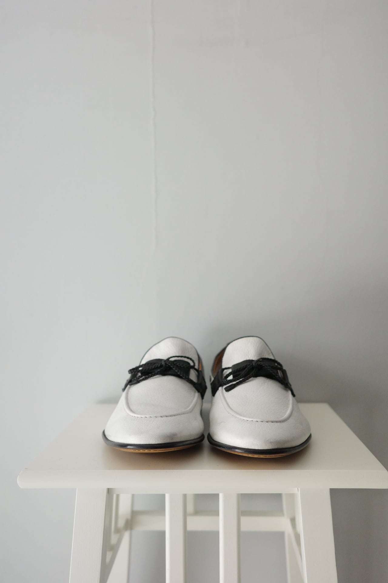 中性洗剤にて水洗い後、陰干し乾燥とシューキーパーによる成型。