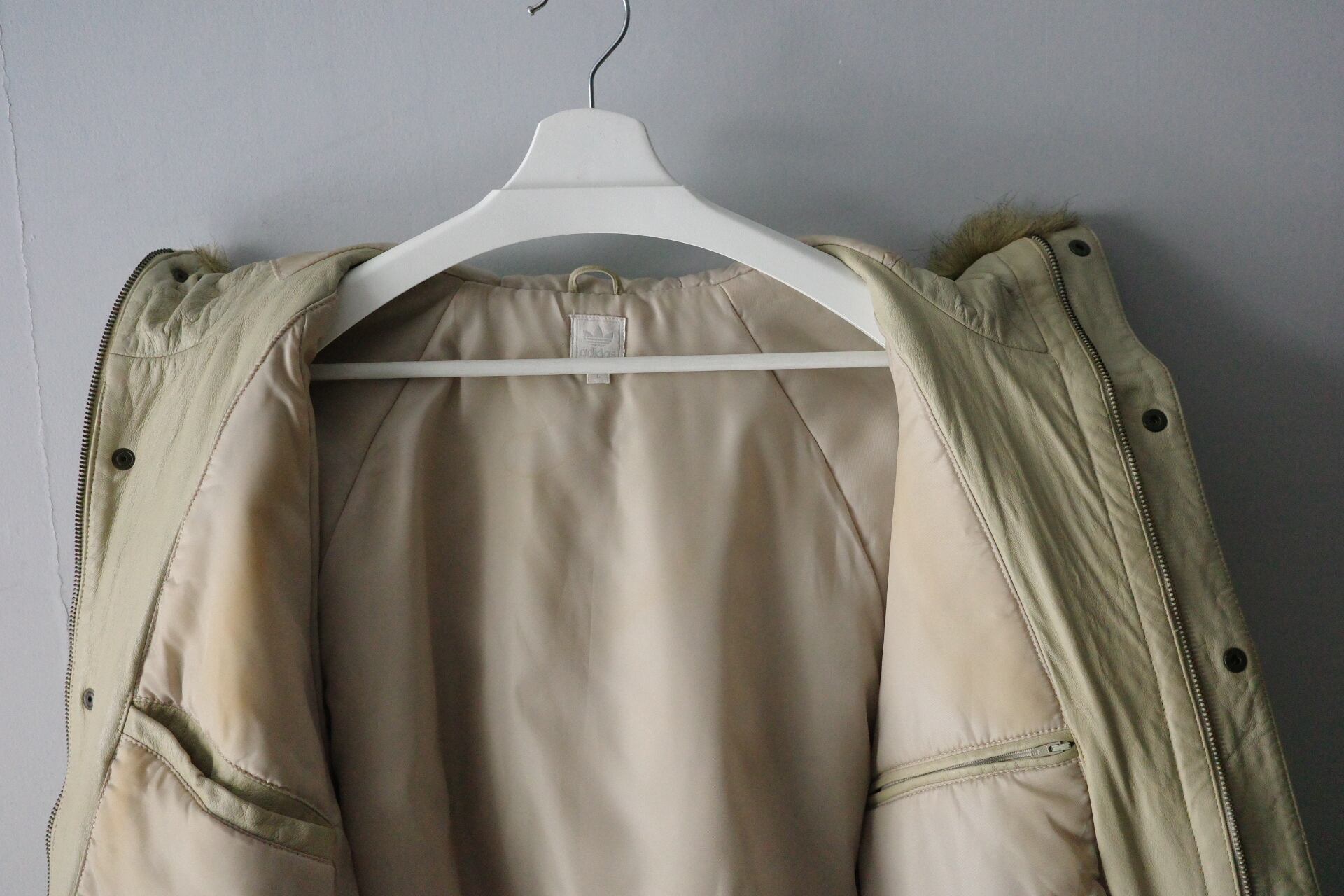 裏地に薄い汚れがいくつかあり、ファスナーのエレメント付近に擦れのある箇所があります。