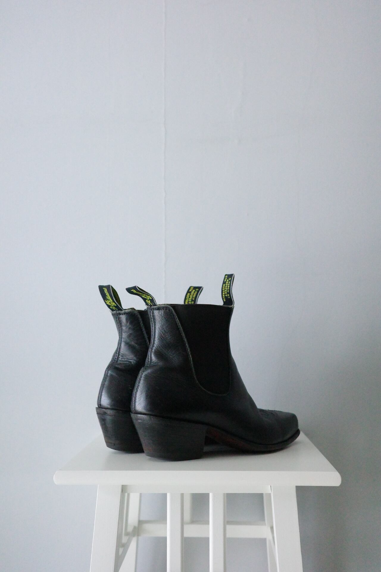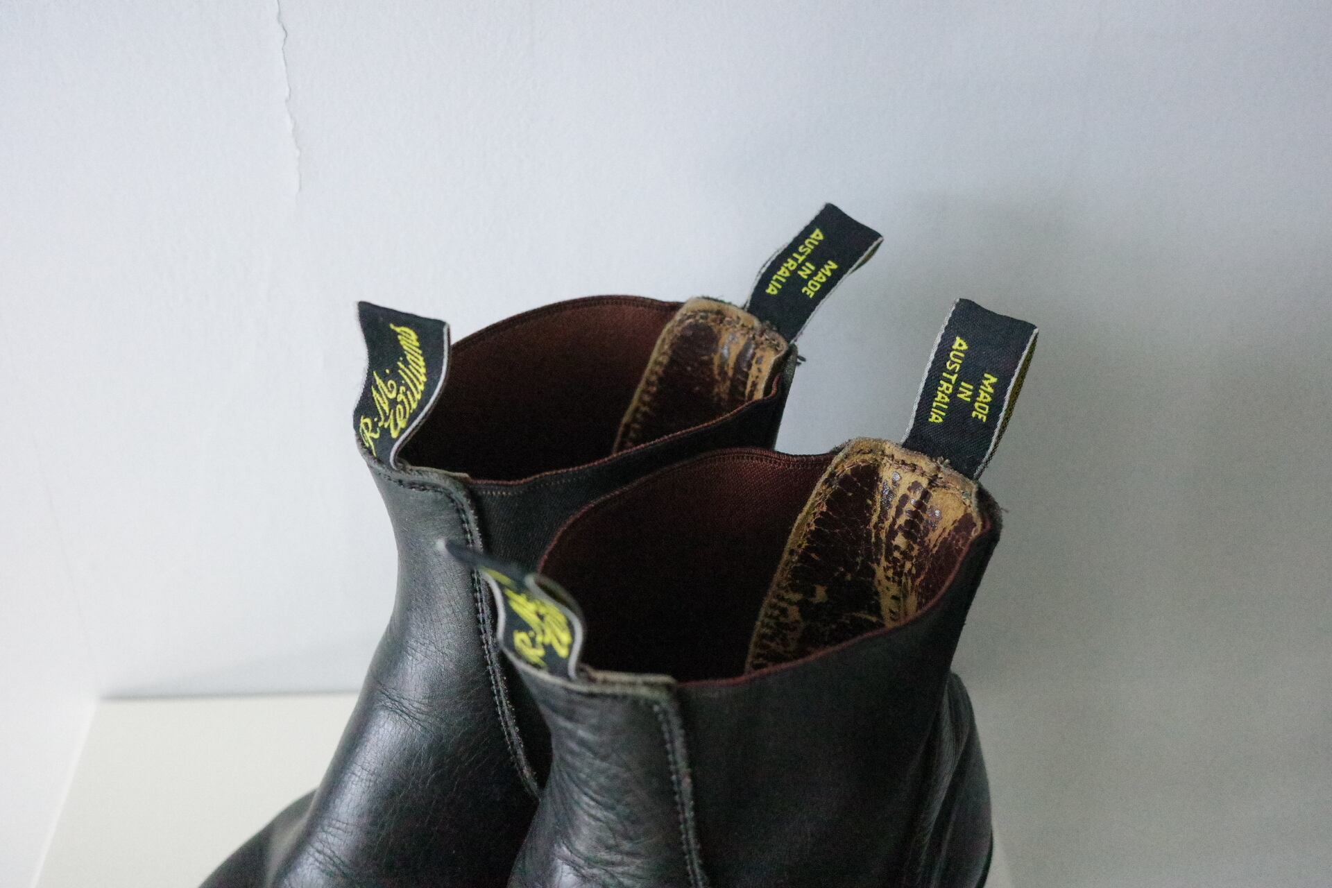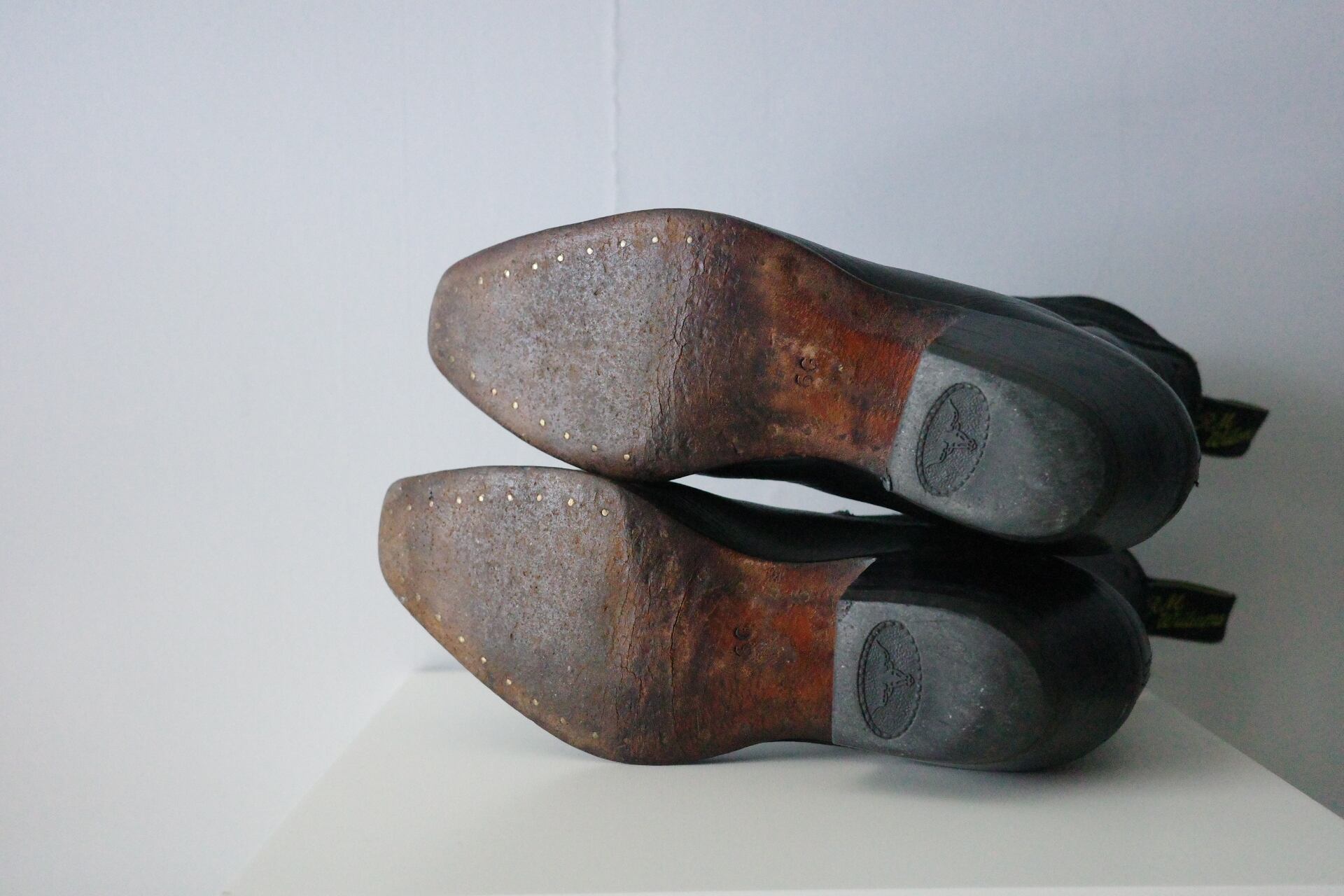 中性洗剤にて水洗い後、陰干し乾燥とシューキーパーによる成型。