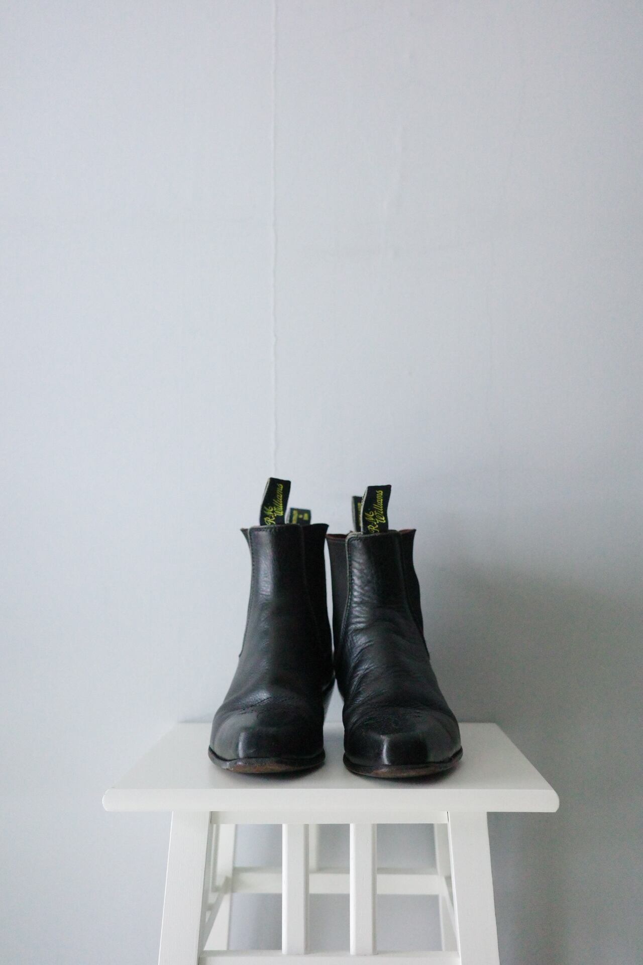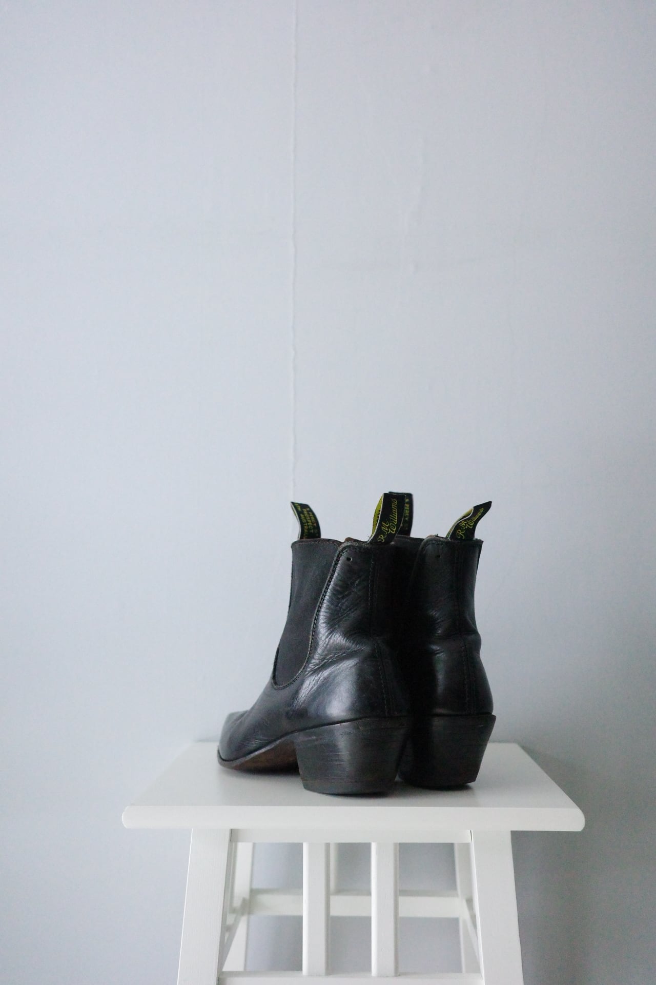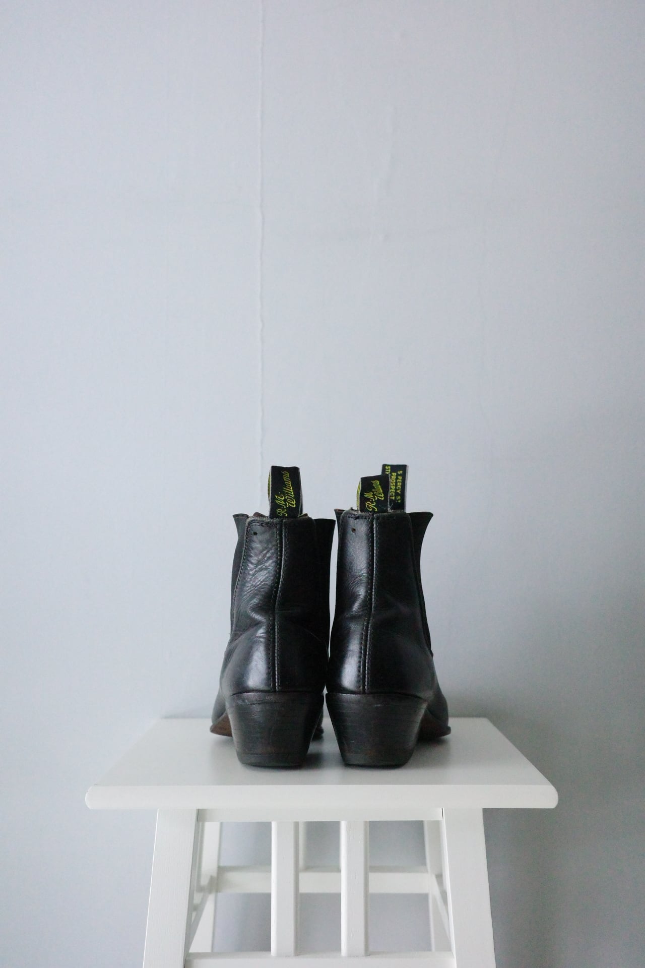 中性洗剤にて水洗い後、陰干し乾燥とシューキーパーによる成型。
