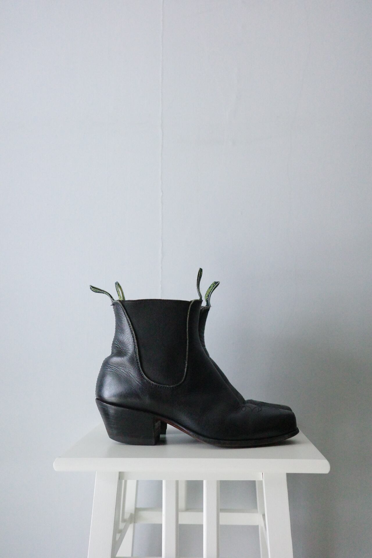 ウエスタンブーツの様な意匠のサイドゴアショートブーツになります。