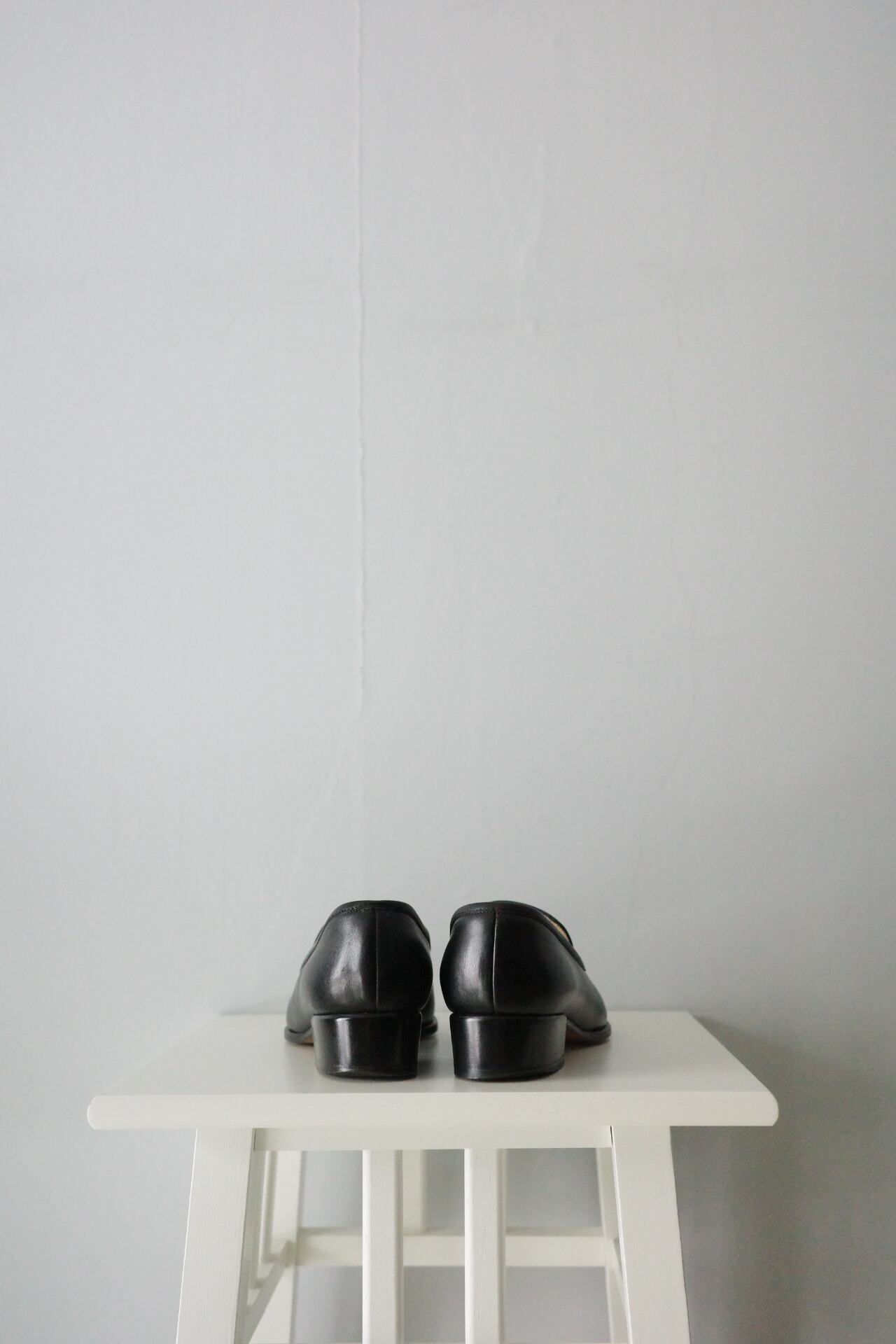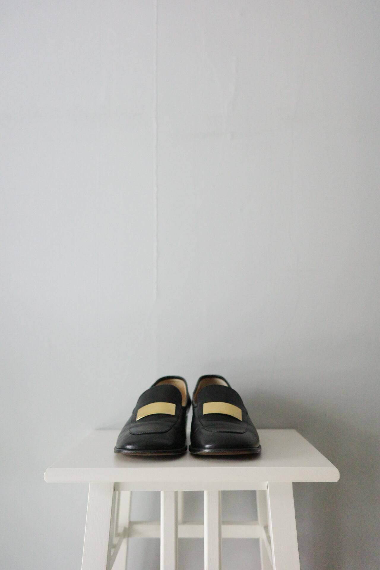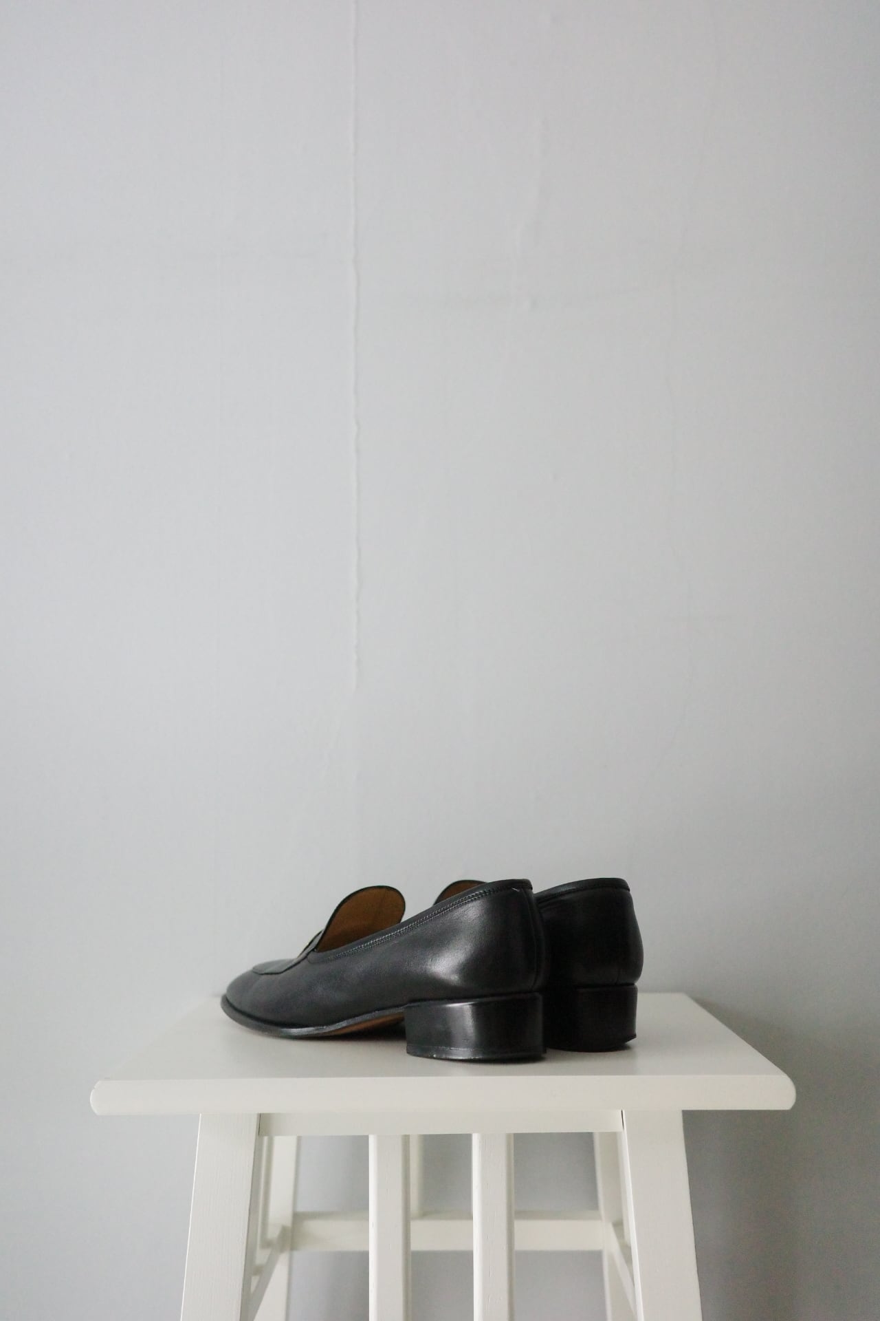 中性洗剤にて水洗い後、陰干し乾燥とシューキーパーによる成型。