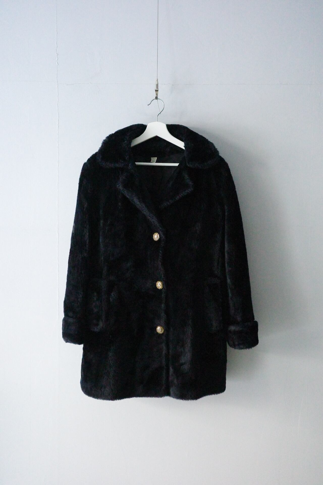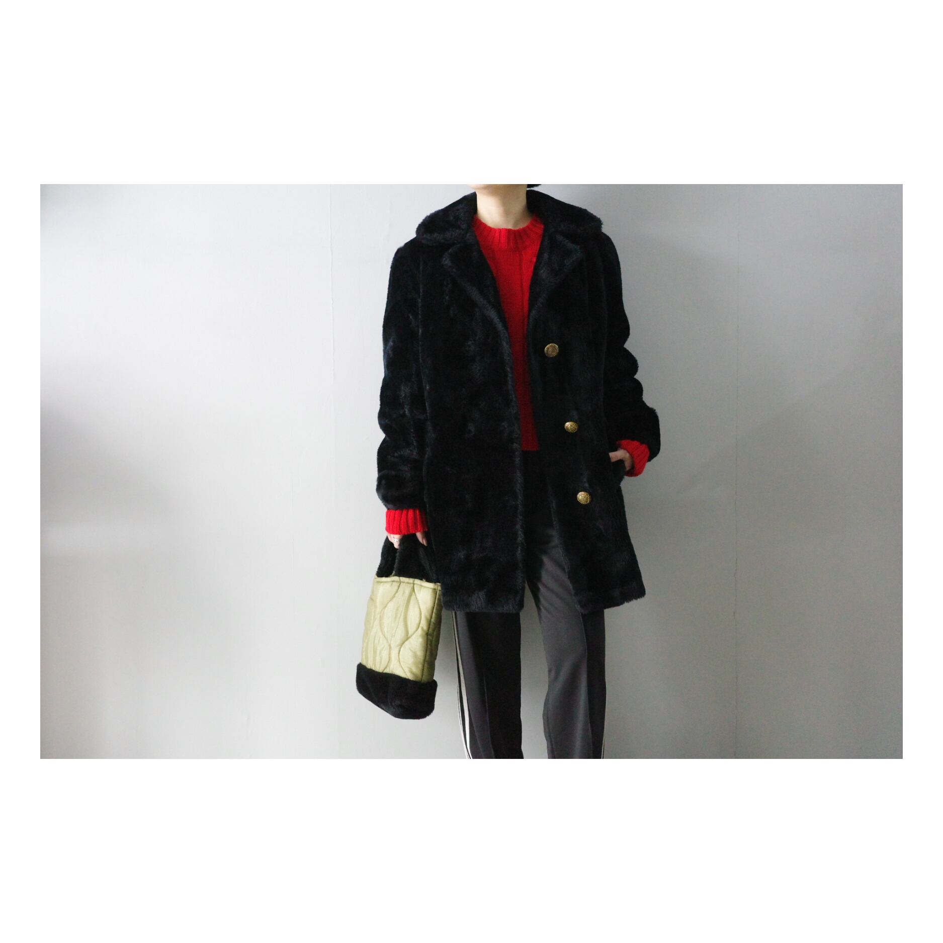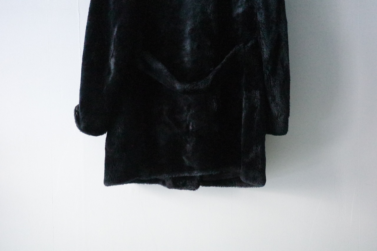 ふんわりとぬいぐるみのような風合いのフェイクファー素材のコート。