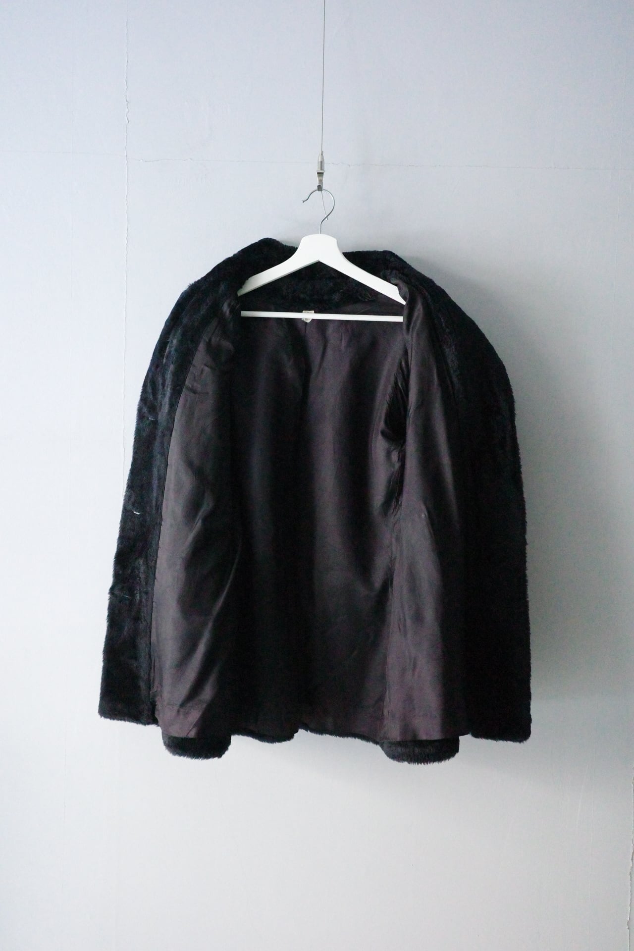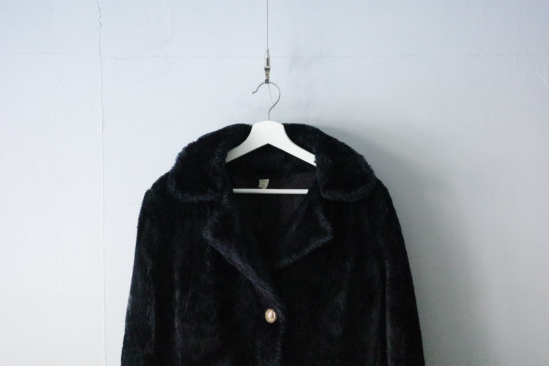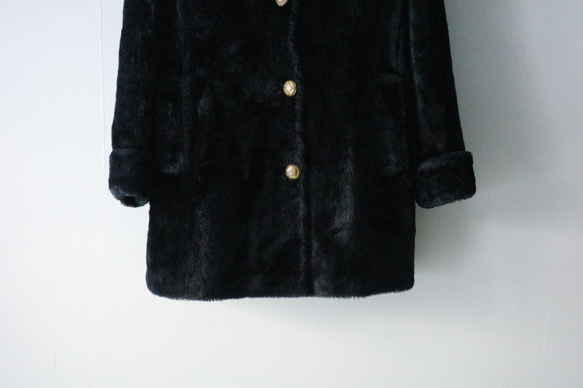 ふんわりとぬいぐるみのような風合いのフェイクファー素材のコート。