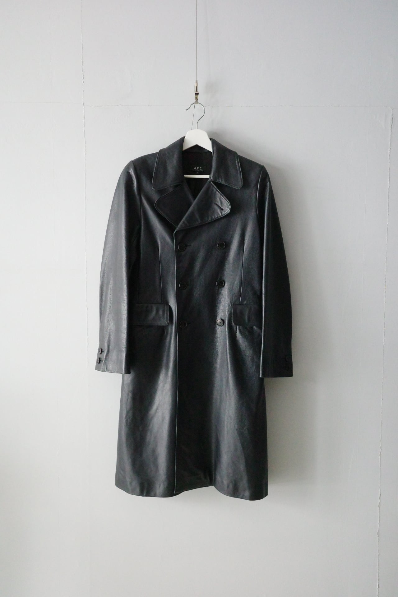 90s A.P.C. 8button leather long coat MADE IN FRANCE