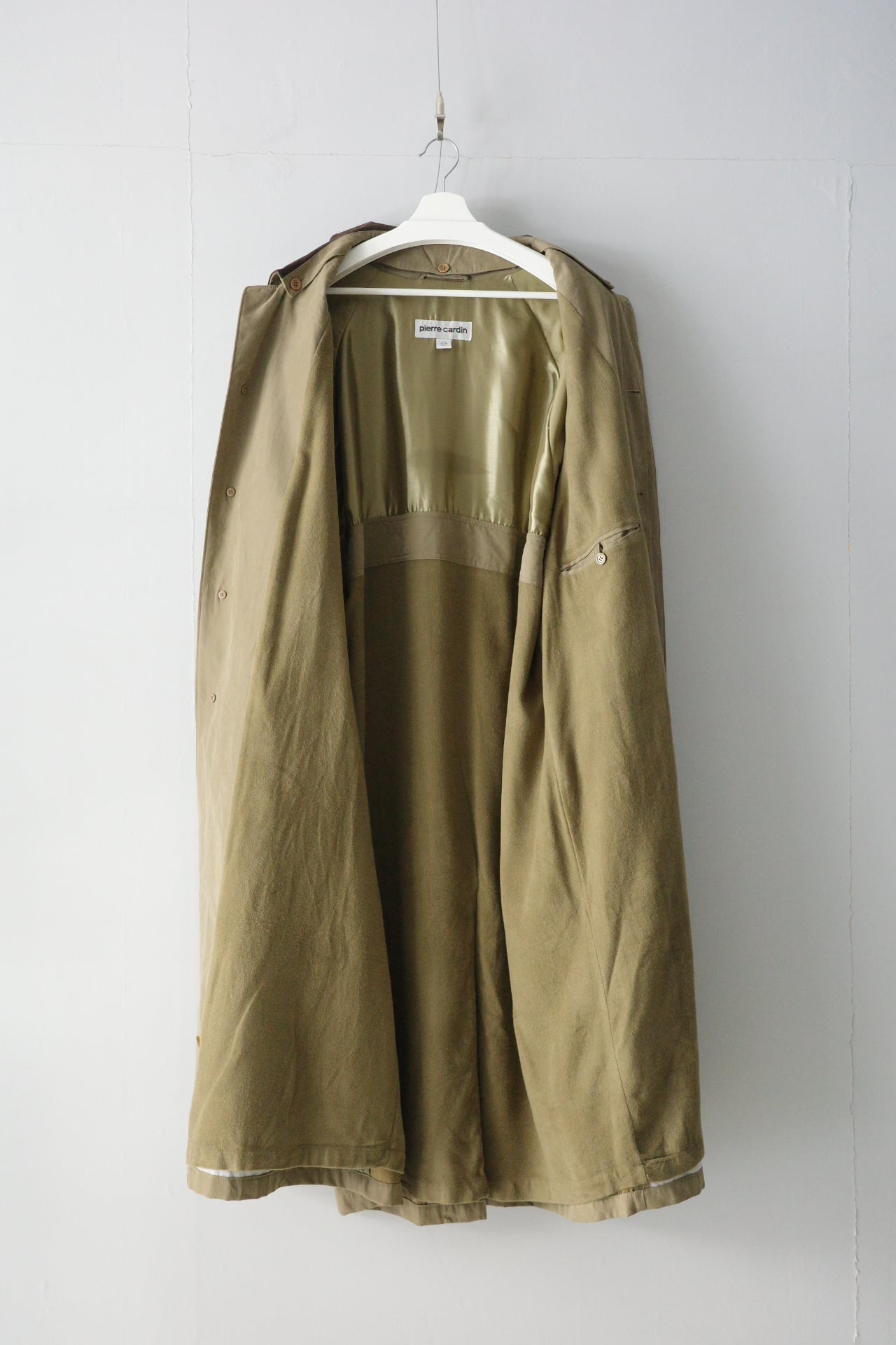 肩のラインが落ちる仕様で、揺らぎのある生地感のコートとなります。