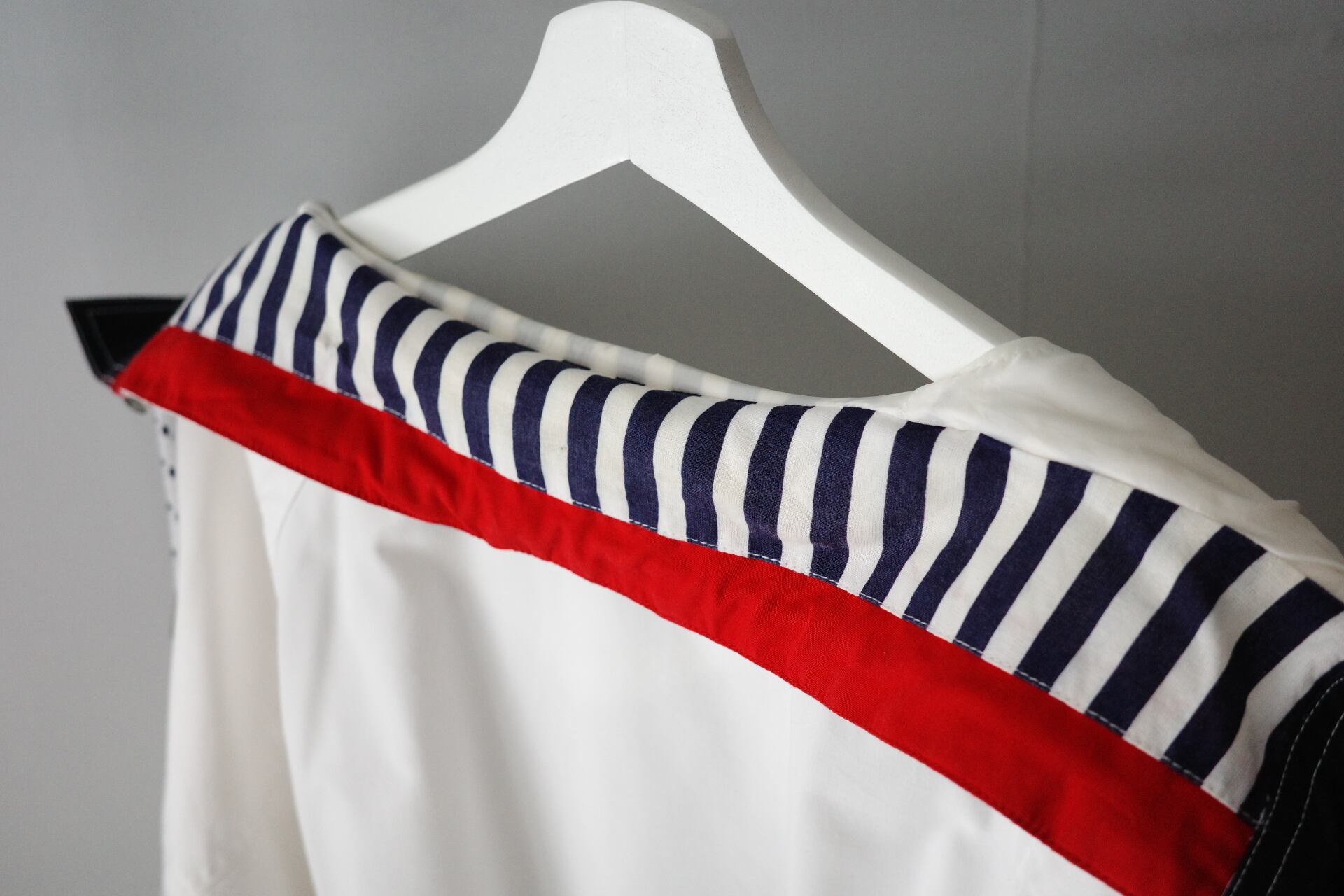 襟ぐりと背中に薄汚れあります。(写真10,12参照)