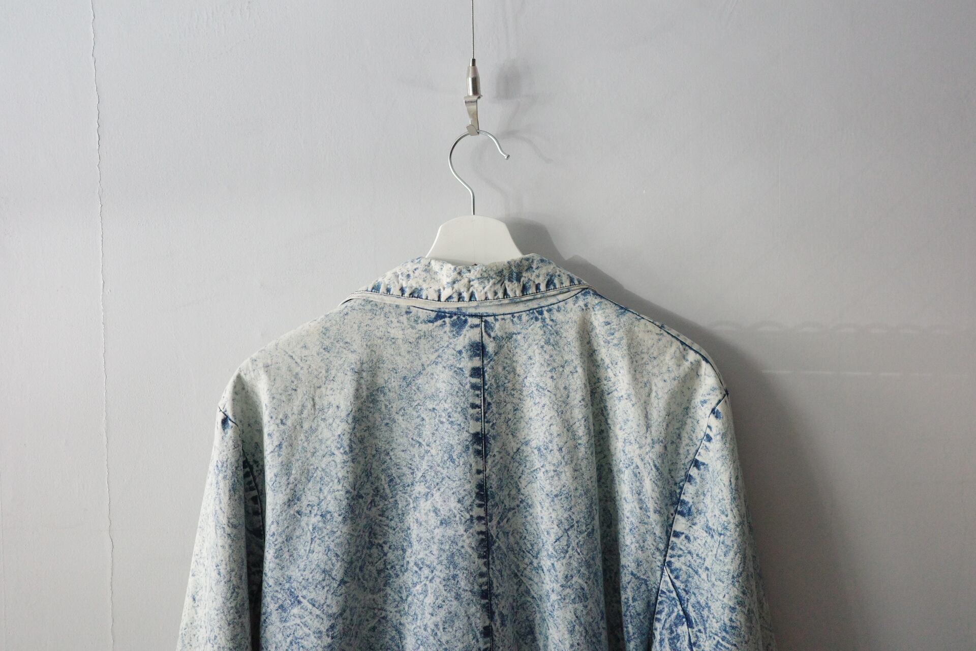 ケミカルウォッシュが施されたデニム生地のジャケット。
