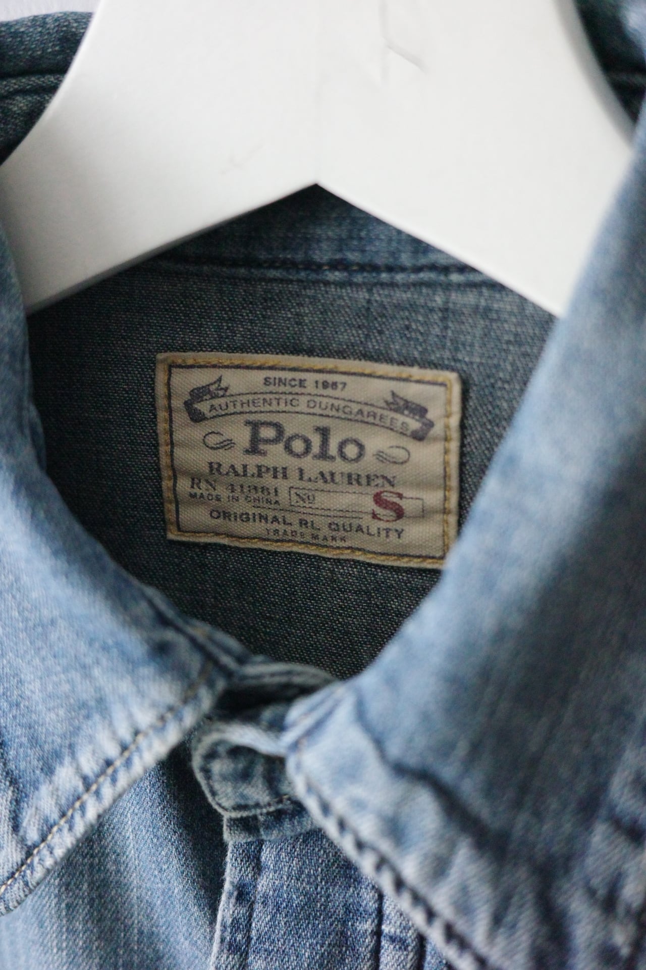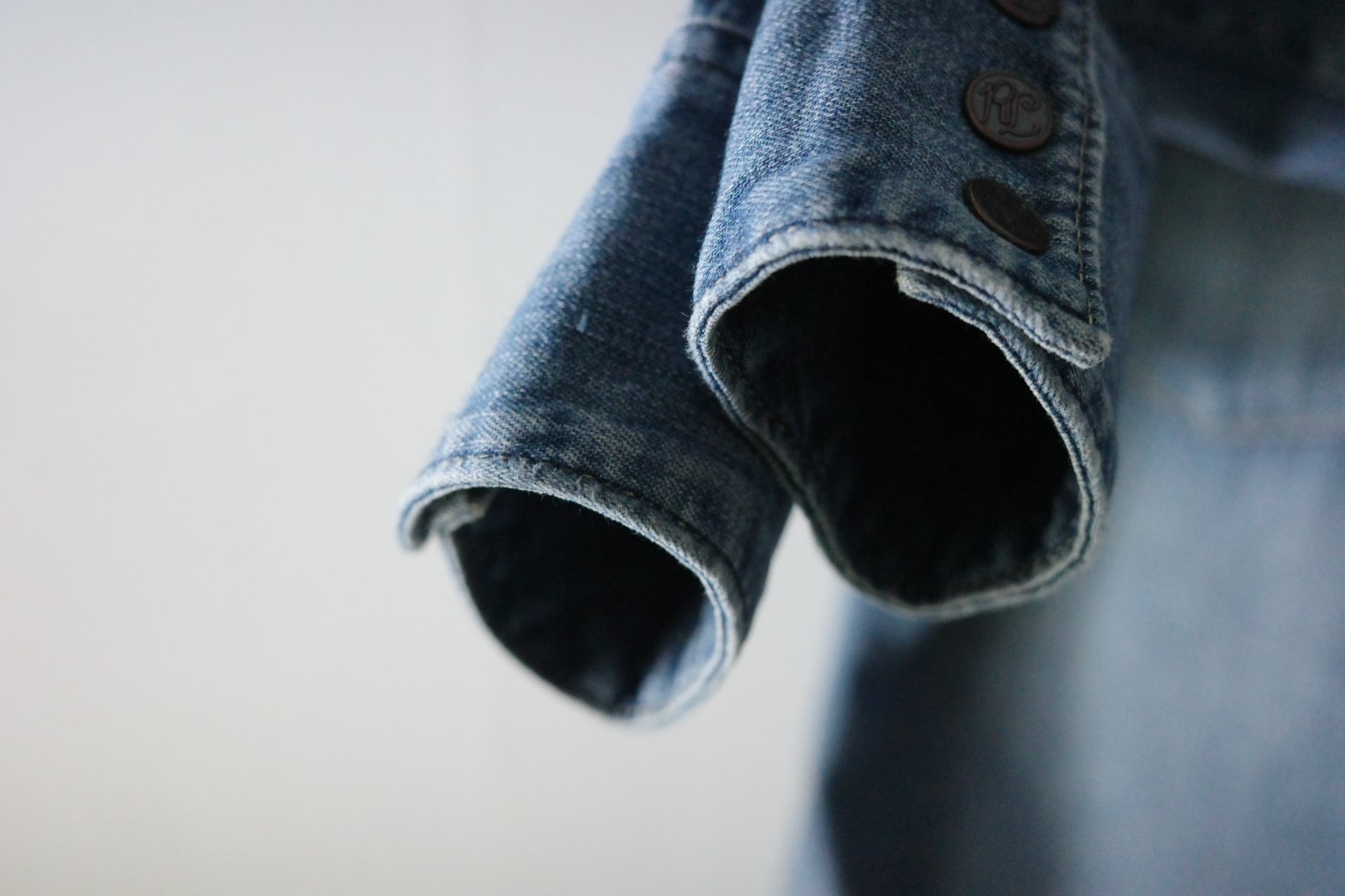 トップボタンまでスナップボタンの仕様になっているデニムシャツ。
