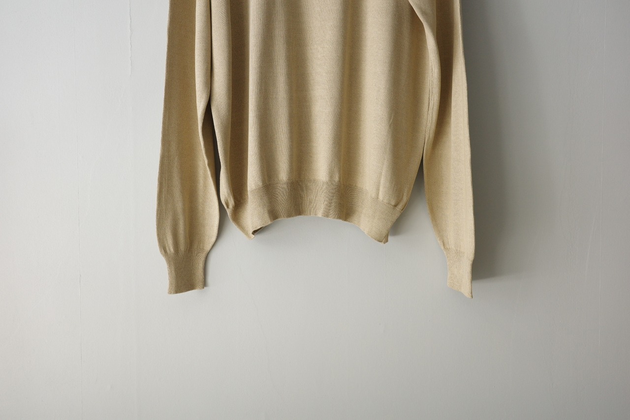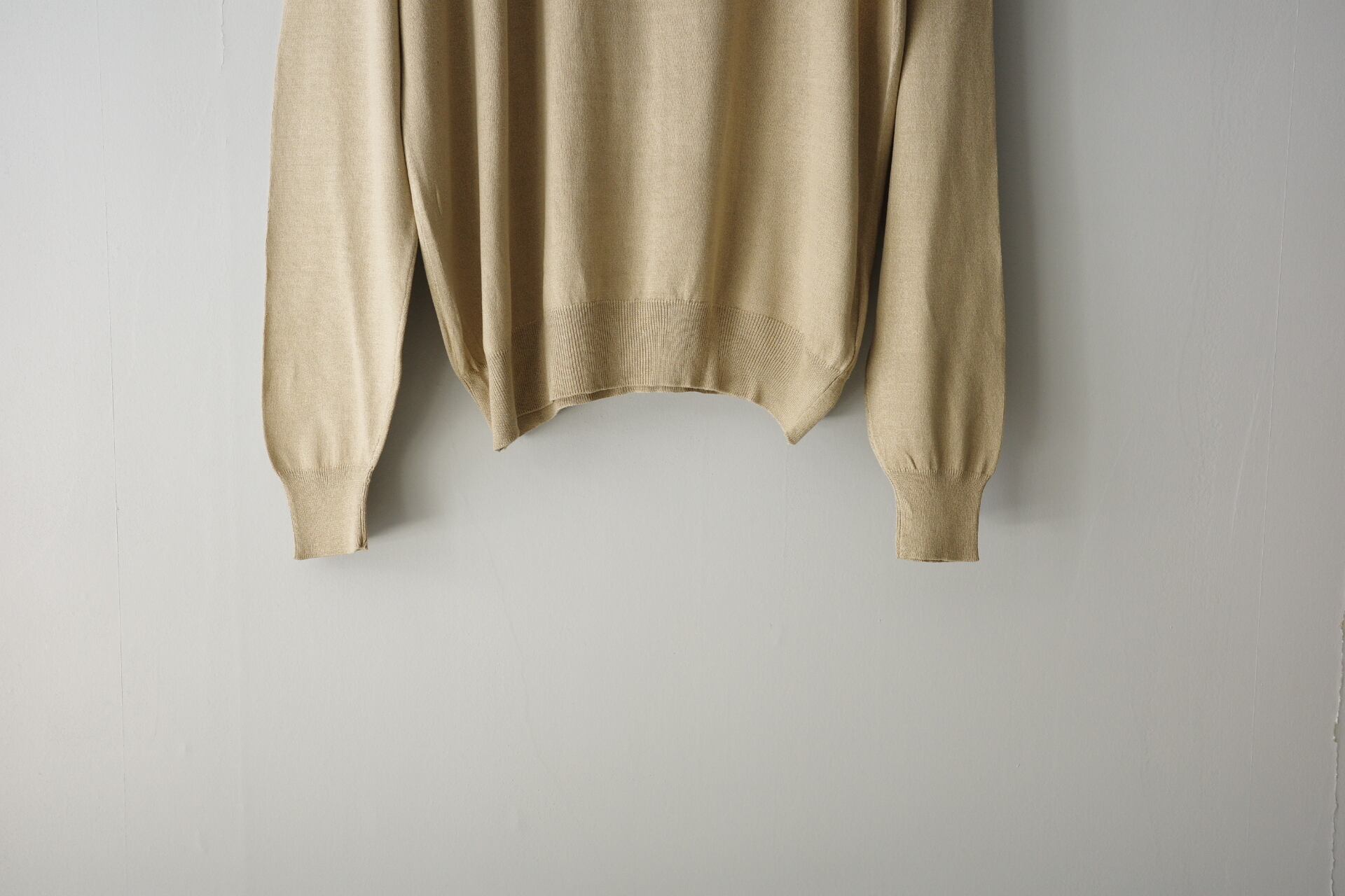 素材特有の光沢感と滑らかさ肌あたりが良いニット。